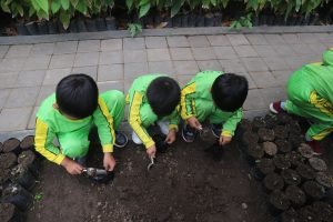 Memasuki tahap kedua dalam Pembelajaran Mendalam, yaitu Mengaplikasi, suasana semakin hidup. Anak-anak diajak untuk mempraktikkan secara langsung apa yang baru saja mereka pelajari. Dengan panduan instruktur, mereka mencoba menanam bibit kakao ke dalam media tanam. Aktivitas ini tidak hanya memberikan sensasi baru dalam belajar, tetapi juga mengembangkan kemampuan motorik halus, koordinasi tangan-mata, dan keberanian untuk mencoba hal baru. Selain menanam, peserta didik juga mendapat kesempatan unik: mencicipi daging buah kakao yang masih segar. Banyak anak-anak memberikan respons spontan penuh kejutan karena rasa daging buah kakao ternyata manis dan segar, berbeda dari rasa cokelat yang biasanya mereka kenal. Momen ini menambah pemahaman bahwa bahan dasar cokelat sebenarnya melalui proses fermentasi dan pengolahan yang panjang sebelum menjadi makanan lezat. Kegiatan berlanjut dengan sesi yang paling ditunggu oleh anak-anak: Cooking Class. Dalam kelas kreatif ini, mereka belajar menghias cokelat dengan berbagai topping dan warna sesuai imajinasi masing-masing. Anak-anak terlihat sangat antusias, bahkan beberapa di antara mereka menunjukkan kreativitas yang luar biasa dengan menciptakan bentuk-bentuk unik dari lelehan cokelat. Salah satu kegiatan yang membuat suasana semakin ceria adalah saat anak-anak menikmati cokelat fountain. Mereka mencelupkan marshmallow atau biskuit kecil ke dalam aliran cokelat hangat yang lembut. Tawa ceria dan ekspresi penuh kebahagiaan menghiasi setiap sudut ruangan. Setelah sesi Cooking Class selesai, setiap peserta didik mendapatkan minuman cokelat sebagai penyegar. Minuman ini dibagikan secara merata sebagai bentuk apresiasi dan memeriahkan kegiatan outing class yang kaya pengalaman ini.