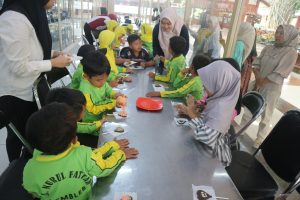 Memasuki tahap kedua dalam Pembelajaran Mendalam, yaitu Mengaplikasi, suasana semakin hidup. Anak-anak diajak untuk mempraktikkan secara langsung apa yang baru saja mereka pelajari. Dengan panduan instruktur, mereka mencoba menanam bibit kakao ke dalam media tanam. Aktivitas ini tidak hanya memberikan sensasi baru dalam belajar, tetapi juga mengembangkan kemampuan motorik halus, koordinasi tangan-mata, dan keberanian untuk mencoba hal baru. Selain menanam, peserta didik juga mendapat kesempatan unik: mencicipi daging buah kakao yang masih segar. Banyak anak-anak memberikan respons spontan penuh kejutan karena rasa daging buah kakao ternyata manis dan segar, berbeda dari rasa cokelat yang biasanya mereka kenal. Momen ini menambah pemahaman bahwa bahan dasar cokelat sebenarnya melalui proses fermentasi dan pengolahan yang panjang sebelum menjadi makanan lezat. Kegiatan berlanjut dengan sesi yang paling ditunggu oleh anak-anak: Cooking Class. Dalam kelas kreatif ini, mereka belajar menghias cokelat dengan berbagai topping dan warna sesuai imajinasi masing-masing. Anak-anak terlihat sangat antusias, bahkan beberapa di antara mereka menunjukkan kreativitas yang luar biasa dengan menciptakan bentuk-bentuk unik dari lelehan cokelat. Salah satu kegiatan yang membuat suasana semakin ceria adalah saat anak-anak menikmati cokelat fountain. Mereka mencelupkan marshmallow atau biskuit kecil ke dalam aliran cokelat hangat yang lembut. Tawa ceria dan ekspresi penuh kebahagiaan menghiasi setiap sudut ruangan. Setelah sesi Cooking Class selesai, setiap peserta didik mendapatkan minuman cokelat sebagai penyegar. Minuman ini dibagikan secara merata sebagai bentuk apresiasi dan memeriahkan kegiatan outing class yang kaya pengalaman ini.